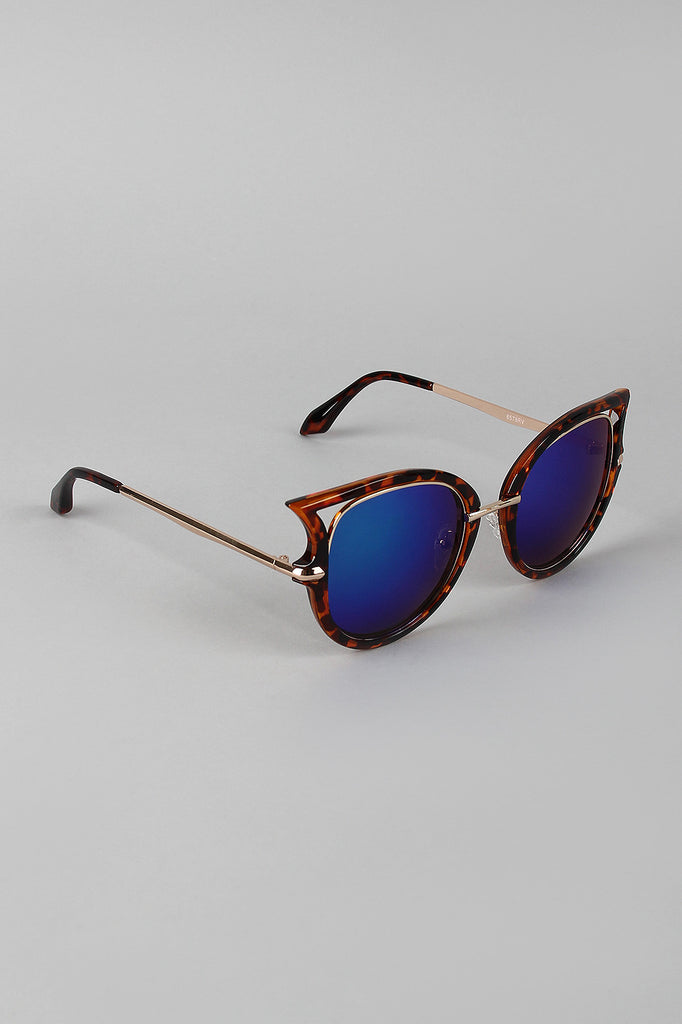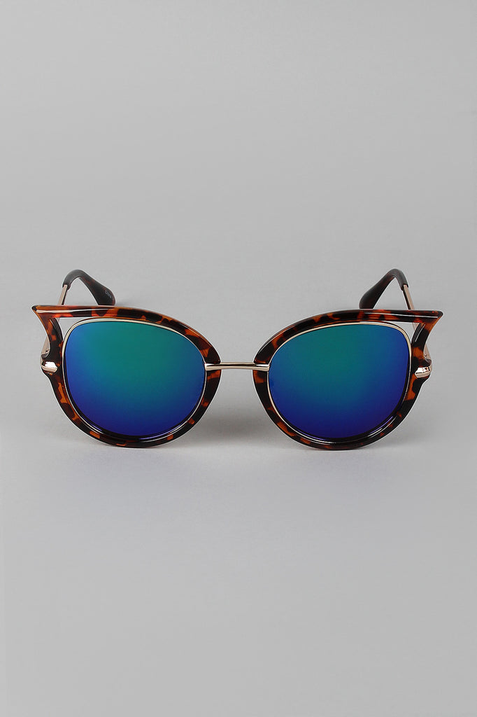 These ultra-cool sunglasses feature a pointy batwing-inspired plastic frame, metallic rims, and colorful reflective lenses.