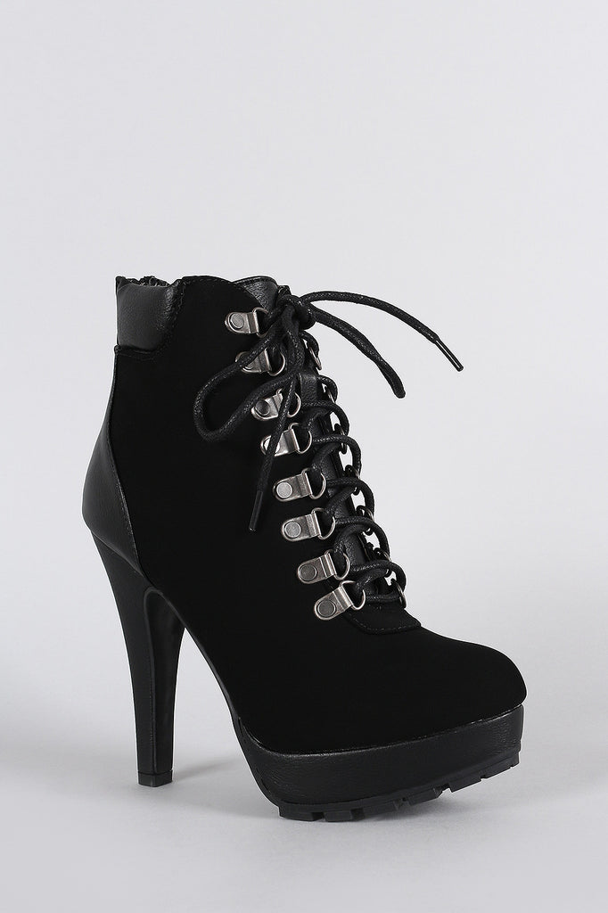 Description These modern attitude lug sole . Designed with a rear back zipper for easy on-off wear. Finished on a leg-lengthening platform and chunky heel.