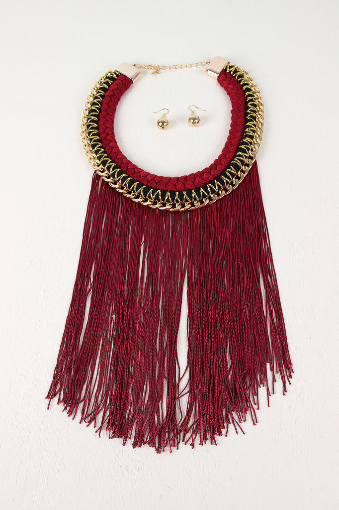 This fringe front. Includes adjustable lobster hook closure and matching earrings. Lead nickel compliant.