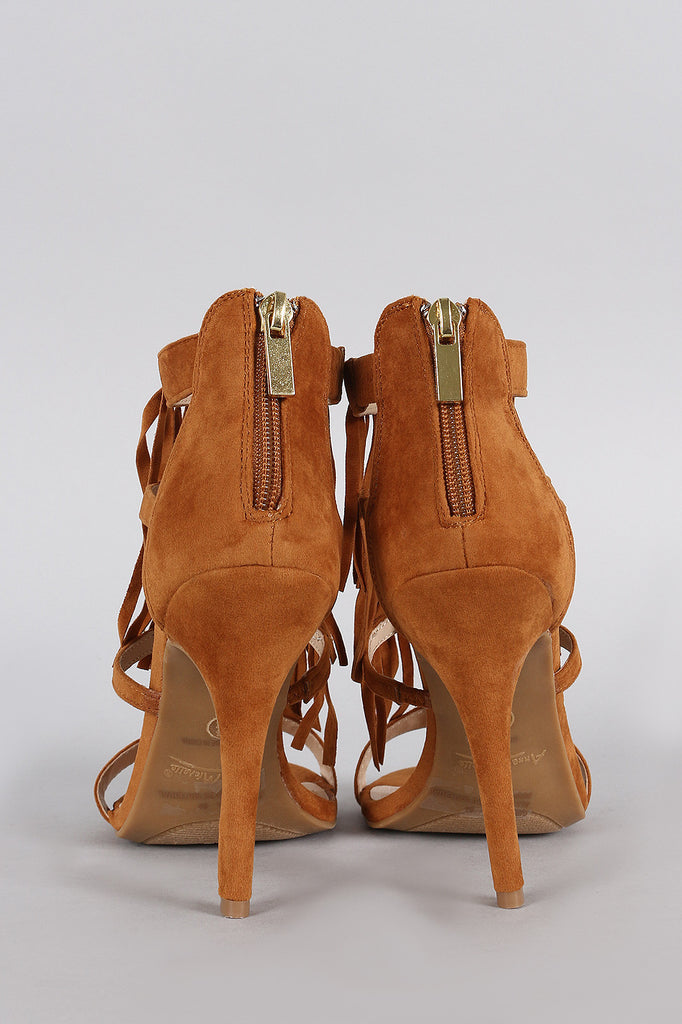 Anne Michelle Falling Fringe Open Toe Heel