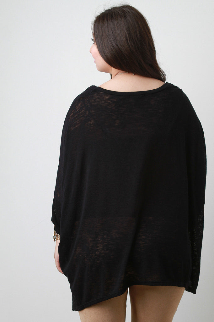 Description This lightweight knitted plus size top features a round neckline, boxy cut construction, and a high low hemline. Accessories sold separately. Made in U.S.A. 62% Rayon, 38% Polyester.