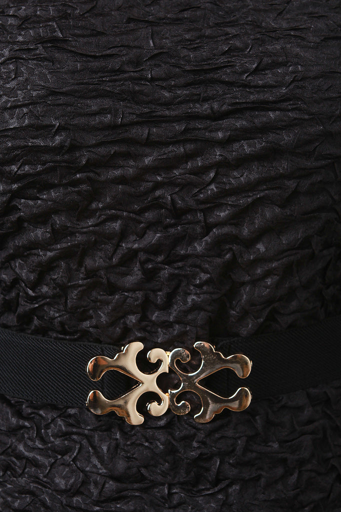 Description This lovely plus size bodycon dress features a crinkled fabrication, round neckline, long sleeves, belted waist, and asymmetrical hemline. Accessories sold separately. Made in U.S.A. 97% Polyester, 3% Spandex.