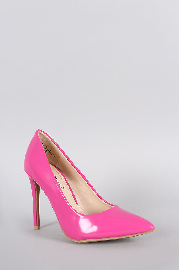 Description This simply beautiful pointy toe silhouette, scooped vamp, and stiletto heel. Finished with lightly cushioned insole and easy slide style.